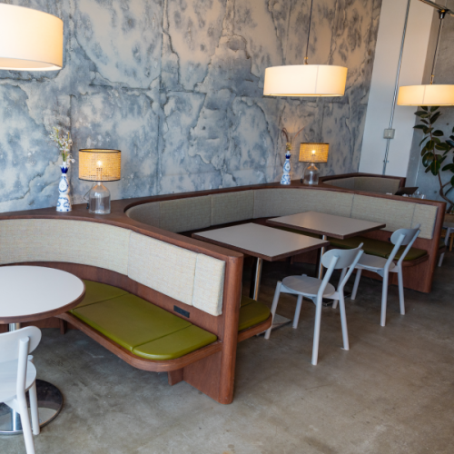 店内はゆったりとしたソファ席を完備しており、小さなお子様連れのご家族も安心してご利用いただけます。さらにテラス席は愛犬との同伴もOK!各席にはコンセントを完備しているので、急な充電やちょっとした作業にも便利です。ママ会や女子会、お散歩帰りなど、どんなシーンでも気兼ねなく立ち寄れるのが魅力です。